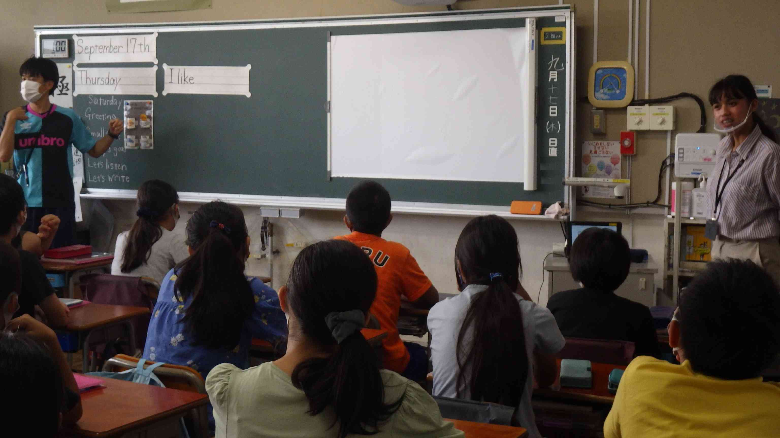 週に2時間の外国語の授業は、英語で会話をする時間です。廊下を通ると、子供たちと先生の笑い声や素敵な歌が聴こえてきます。今回は自分のことを紹介するクイズを作りました。好きな遊びやスポーツ、今欲しいものなどを英語で考えました。次回のクイズ大会が楽しみです。