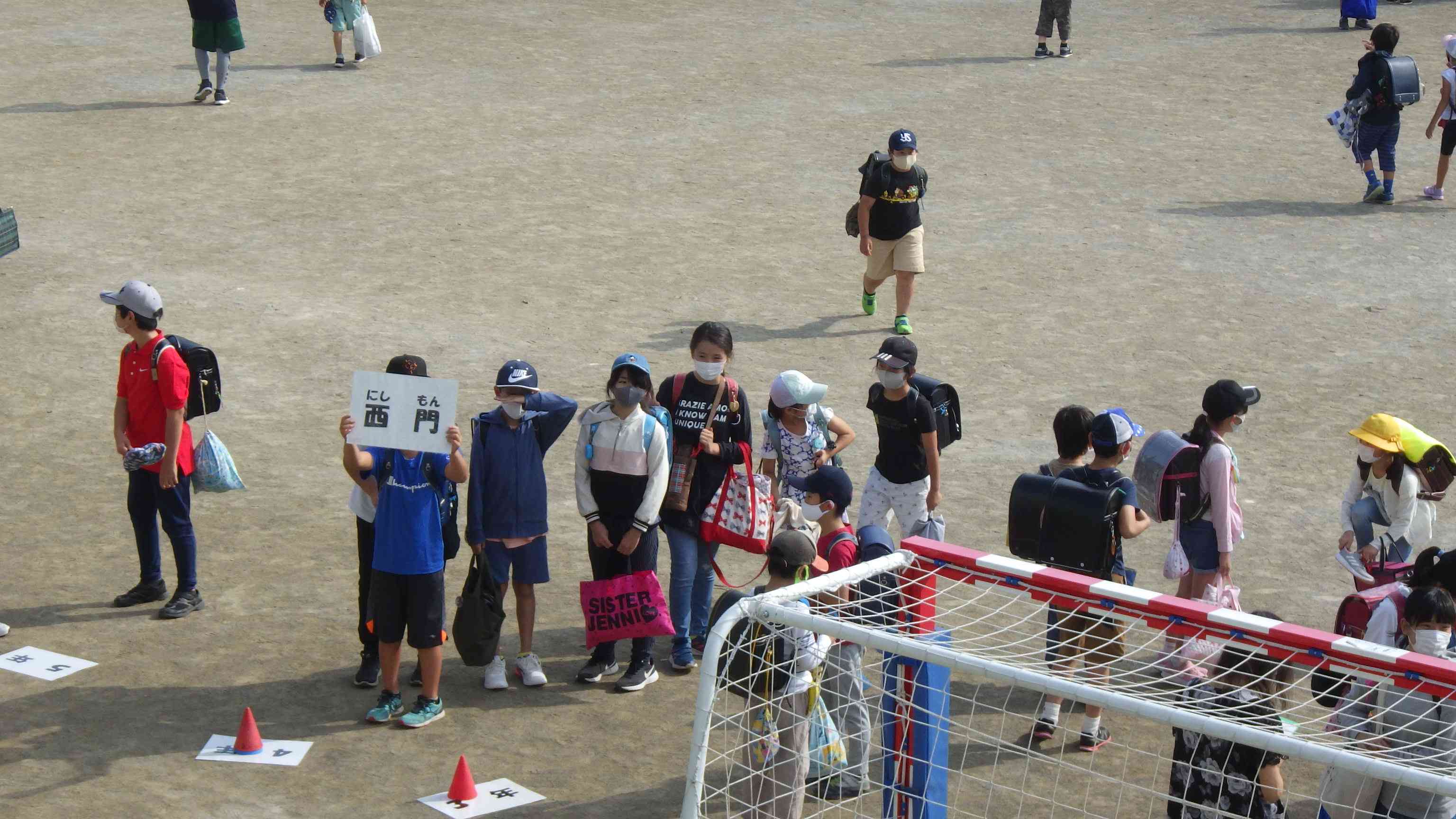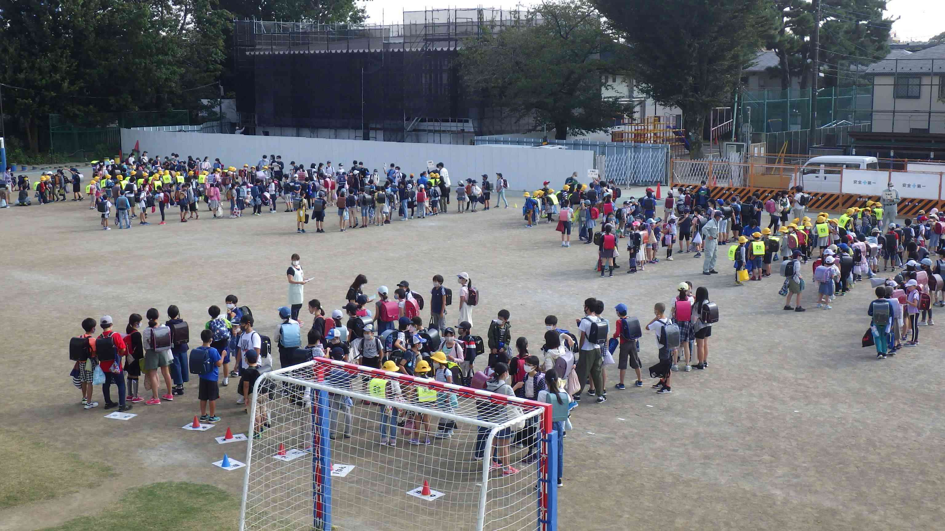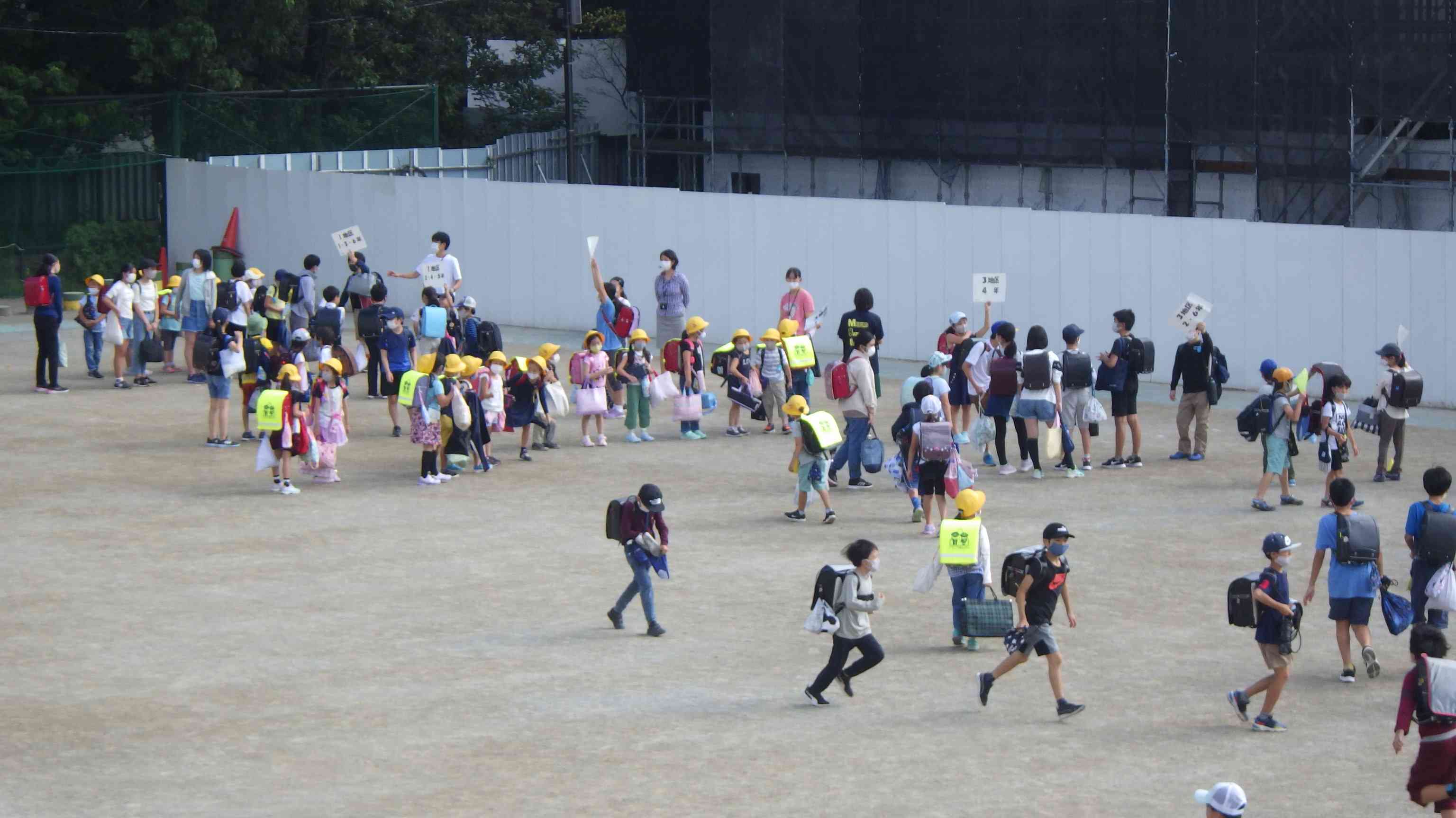 今回は、近隣で殺傷事件が発生し、犯人が捕まっていない状態を想定しての下校訓練でした。大正通り東、大正通り西、西門の方向別にまとまって帰りました。要所要所にスケット隊の保護者の皆様が子どもたちを見守ってくださっていたので、子どもたちも安心できました。一人にならない、速やかに帰宅する、危険だと思ったら助けを求めるように伝えました。このようなことが起こらないことを願っていますが、もしもの時は、スケット隊だけでなく、全員の力で子どもたちを守っていきましょう。【添付ファイル】