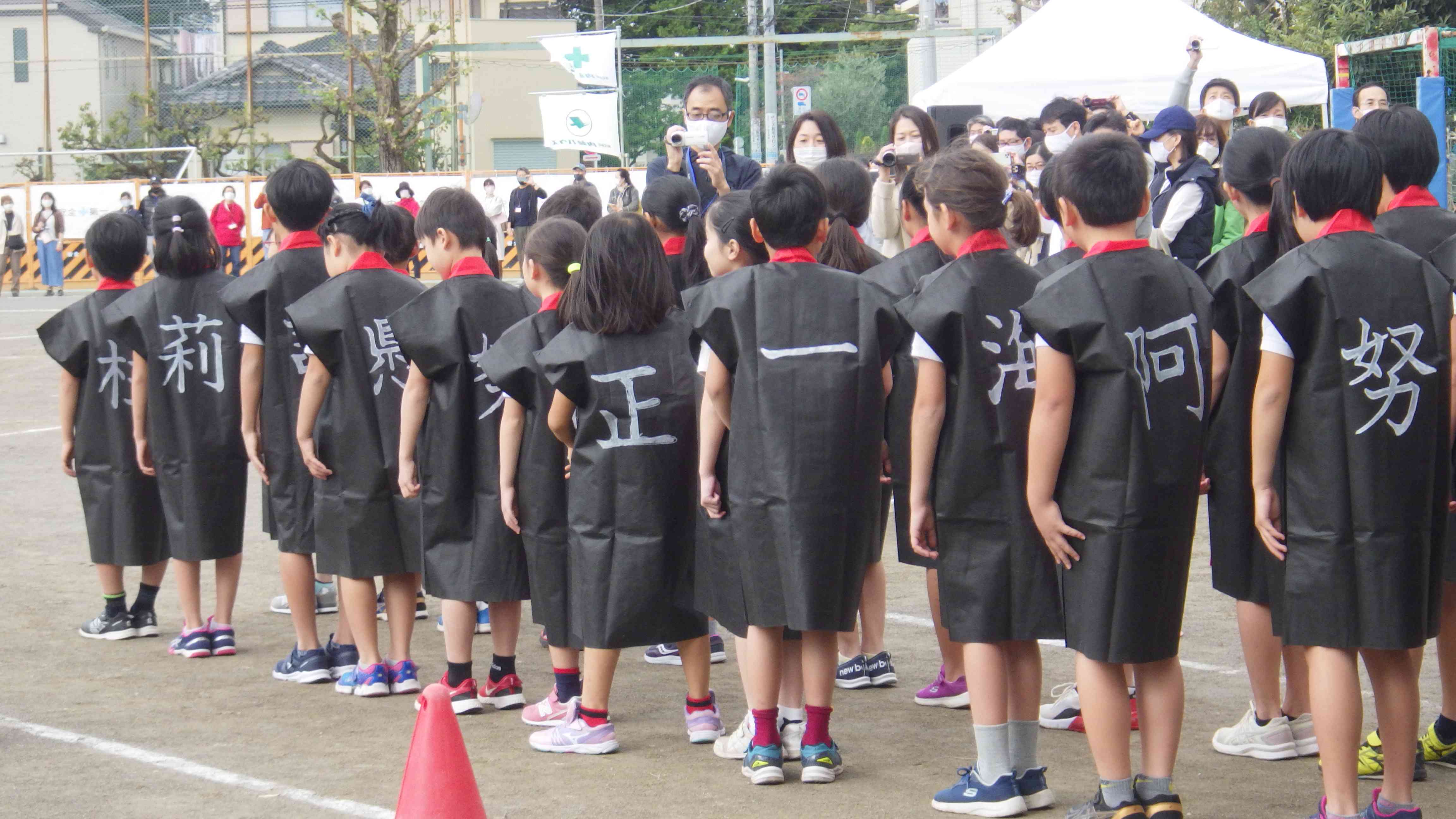 4年生は、阿麻和利。 4年生のテーマは「かっこよく」 沖縄の踊りを、姿勢やキレにこだわって一生懸命練習してきました。 一人一人の好きな字を背中に書いた、はっぴを着て 「元気よく」・「堂々と」・「かっこよく」 精一杯取り組み、最高の演技ができました。