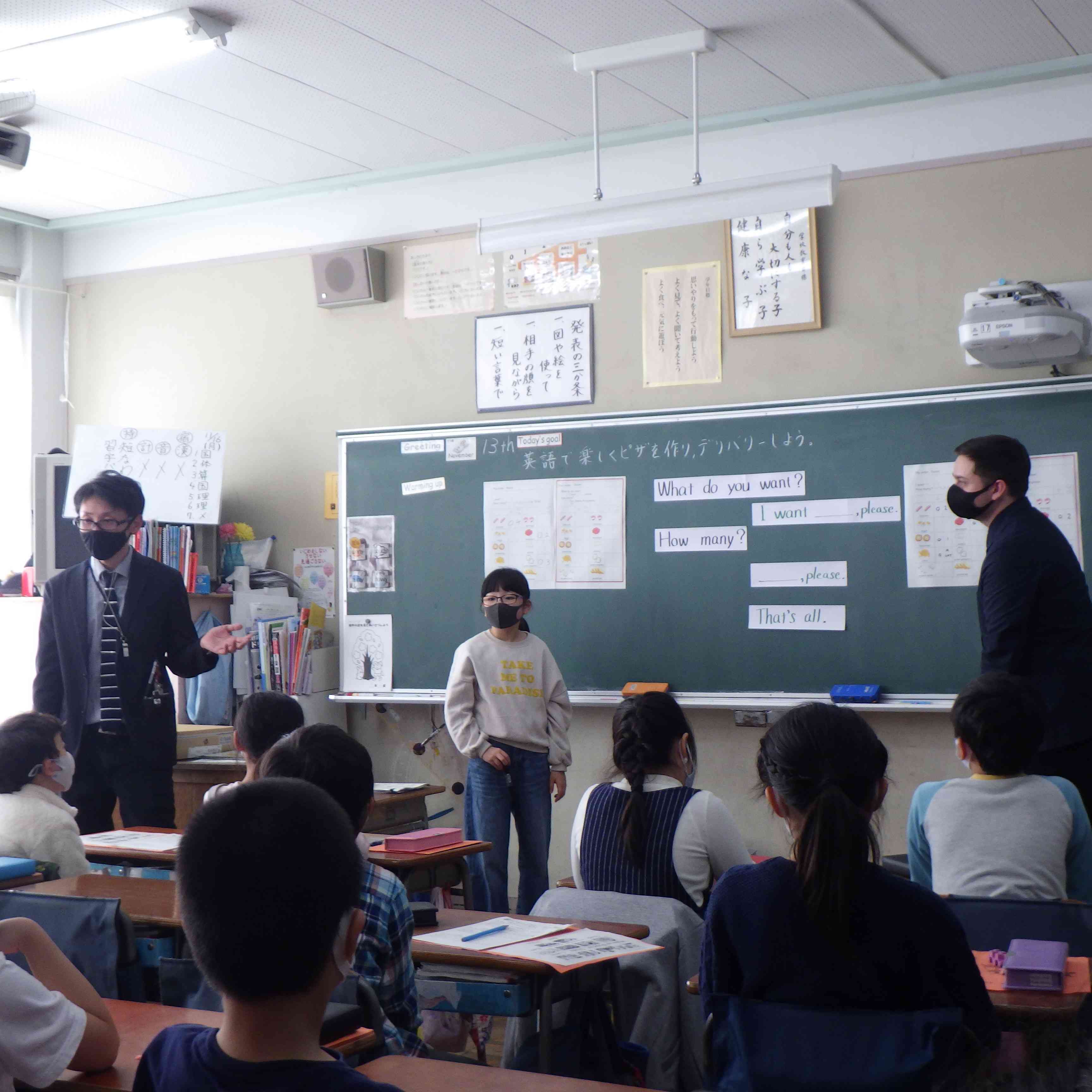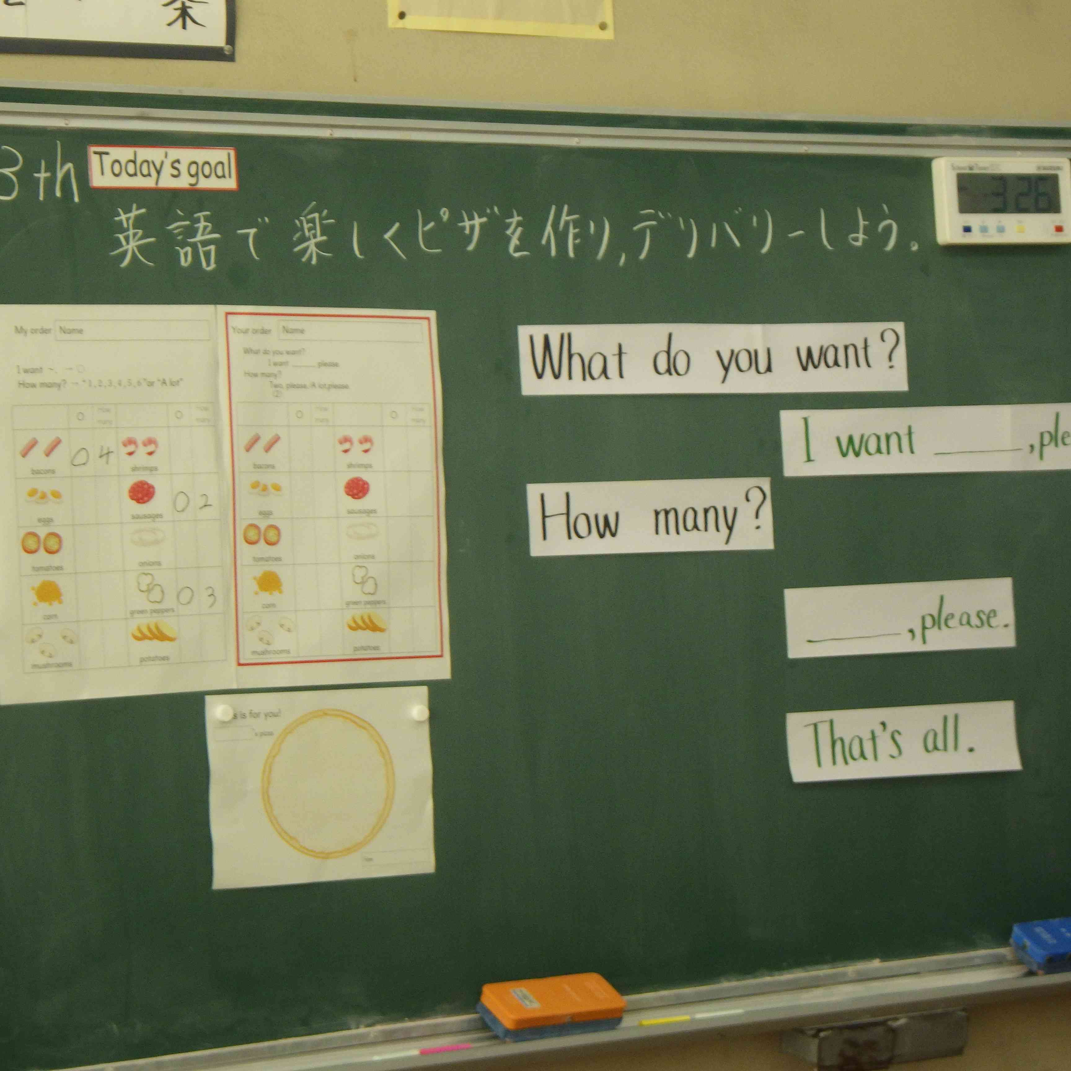 研究主題「笑顔でコミュニケーションする児童の育成」 ~様々な授業づくりを通して~ 今年度は、低学年・中学年・高学年のブロックで1本ずつ研究授業を行う予定です。第1回目の授業は中学年が担当し、外国語活動の授業を中心として研究主題に迫りました。 'What do you want?' 'I want ~,pleaze.' 'How many ?' 'Two,please.'という会話の勉強ですが、ピザをオーダーする人と作る人に分かれて、活動を行いました。英語が苦手な子どもも友達と楽しそうに英語でコミュニケーションをとっていました。終了後、「今日の晩御飯は、ピザにしてもらおう。」という言葉に思わず微笑んでしまいました。【添付ファイル】