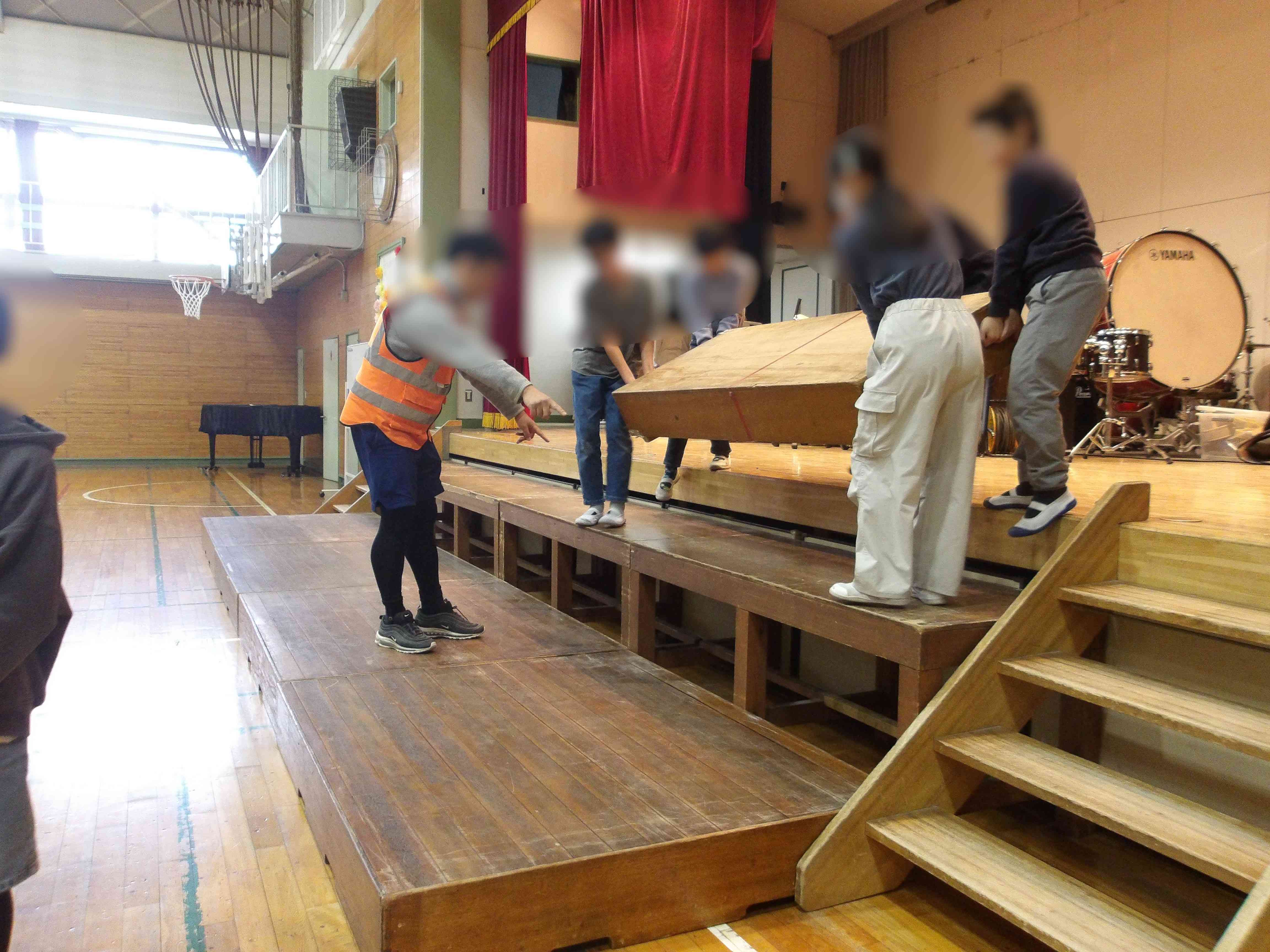 3月5日(水)4時間目に、学年合同で「6年生を送る会」に向けて会場設営を行いました。 本日は、初めてひな壇を設置しました。 ひな壇の持つ位置や受け渡し方など、安全に気を付けて行いました。 卒業式に向けて体育館の中を整理する活動も行いました。 てきぱきと学校のために行事を行う会場をつくりあげていく姿に、「4月から最高学年になる。」という気持ちの高まりを感じました。